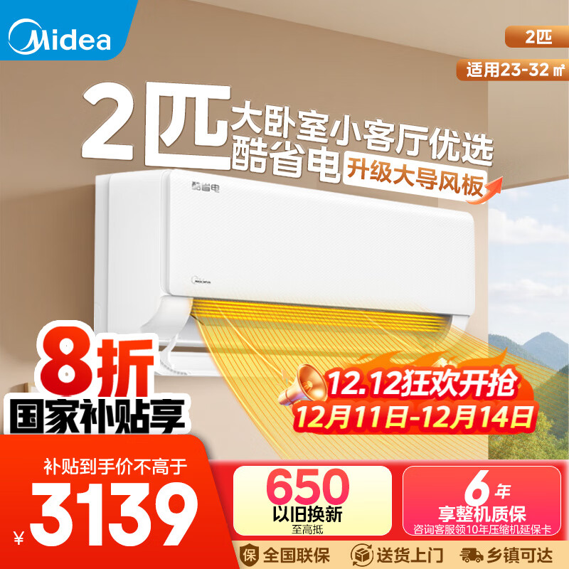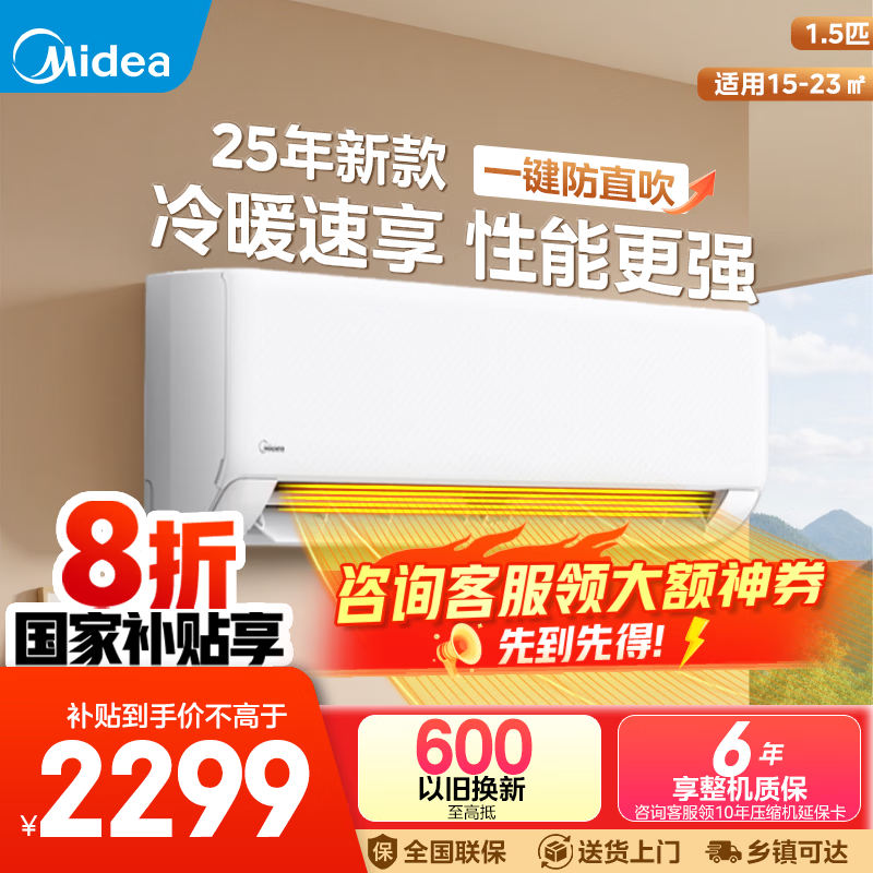 美的(Midea)【国家补贴20%】空调挂机 酷省电 PRO大1.5匹1匹 新一级能效变频 冷暖除湿家用卧室壁挂式以旧换新 酷省电 大1.5匹 冷暖 一级能效 真节能