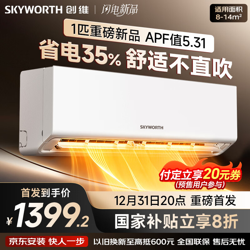 创维空调京创1匹 超省电新一级能效 国家补贴变频冷暖壁挂式 纯铜挂机以旧换新KFR-25GW/V3BA1A-N1MA