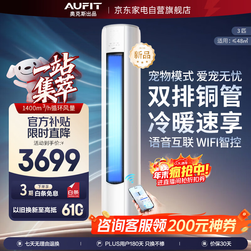 AUFIT空调奥克斯出品大3匹新一级能效变频【25年新款】家用大客厅柜机KFR-72LW/BpR3AFQA1(B1)以旧换新