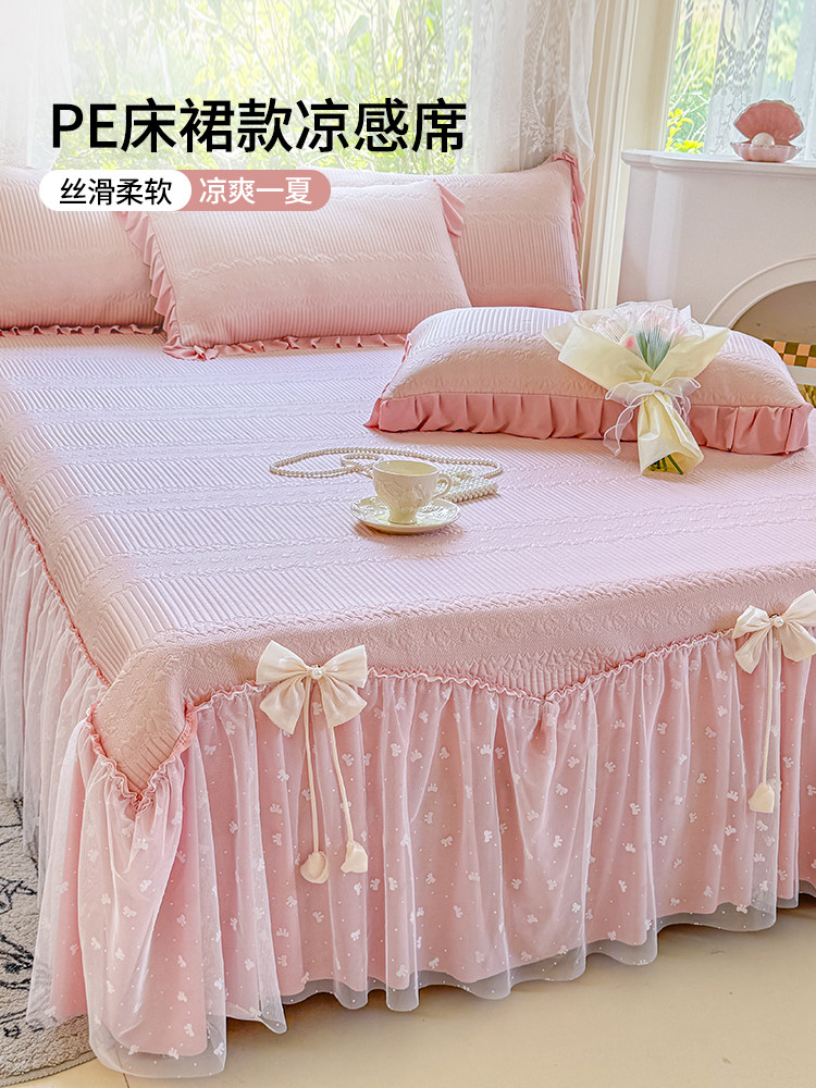 韩版公主风甜美冰豆豆凉席浪漫蕾丝少女床裙款冰丝席三件套空调席