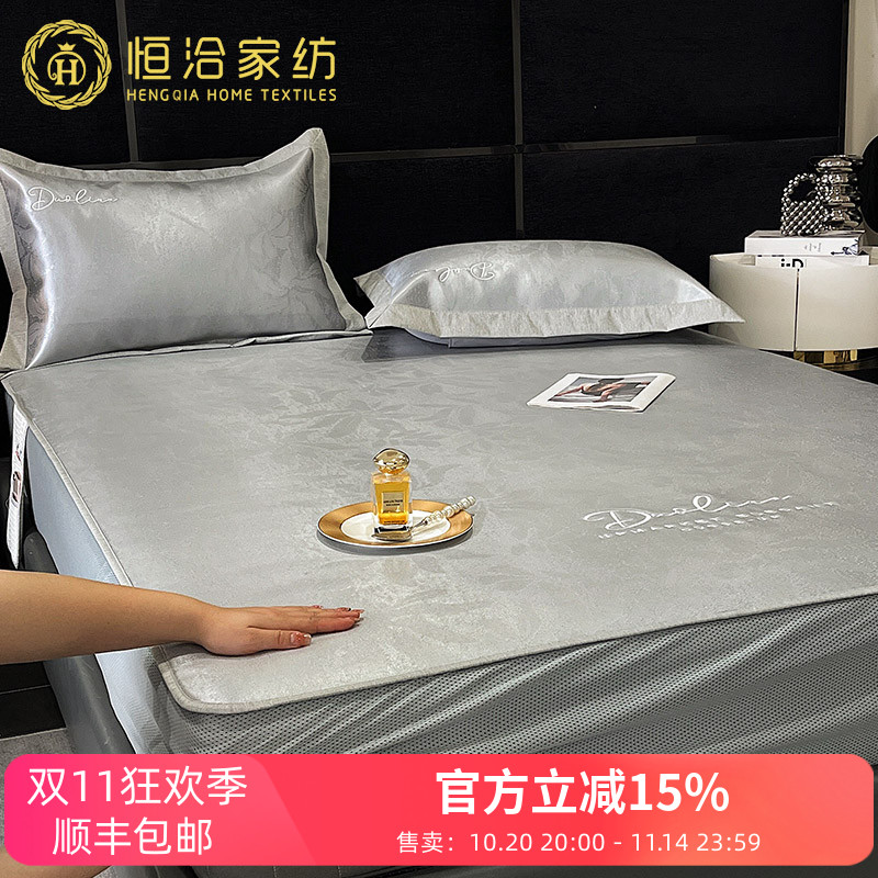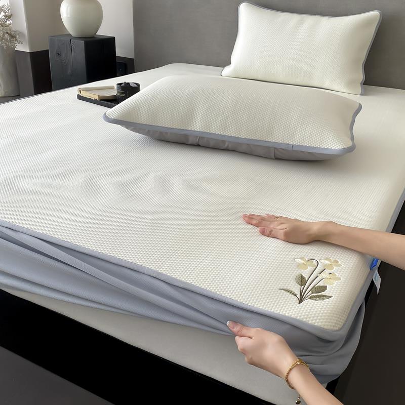 轻奢新款冰丝凉席三件套提花夏季床笠款空调席可折叠水洗机洗裸睡