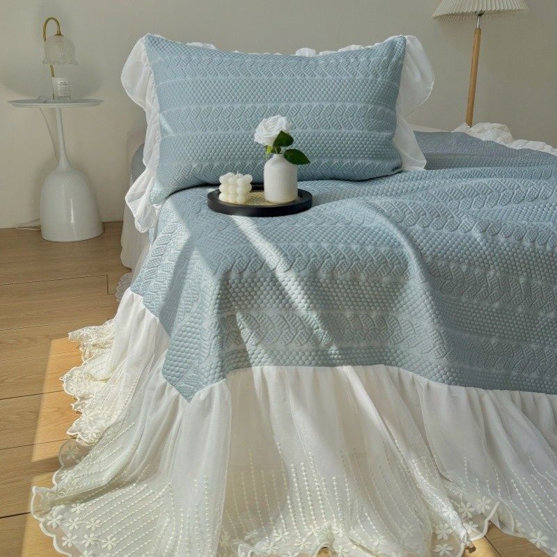 夏天A类凉感冰豆豆提花凉席床裙款F三件套蕾丝花边可机洗空调软席