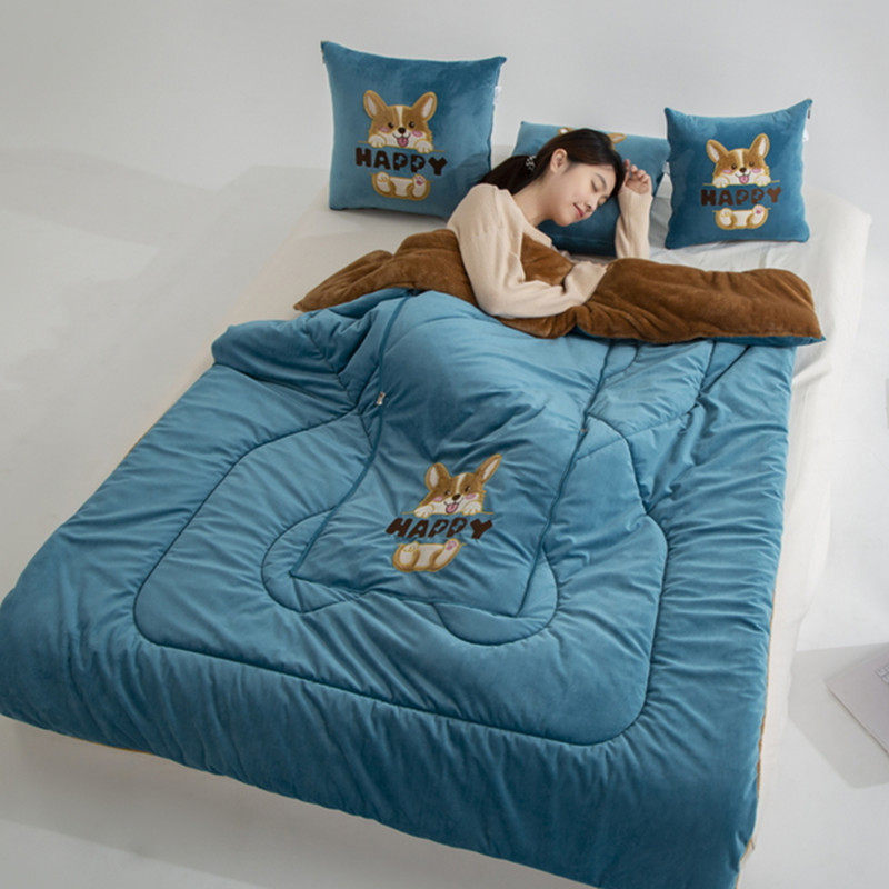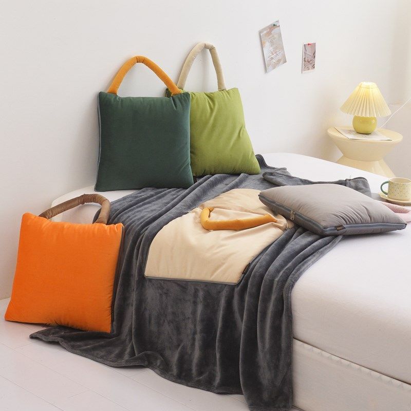 牛奶绒空调被多功能抱枕被柔软手感面料超厚汽车载靠垫被子可机洗