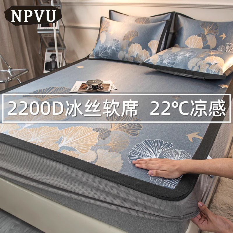 夏季冰丝凉席三件套可水洗床笠款防滑空调席子1.5m1.8x2x2.2米床