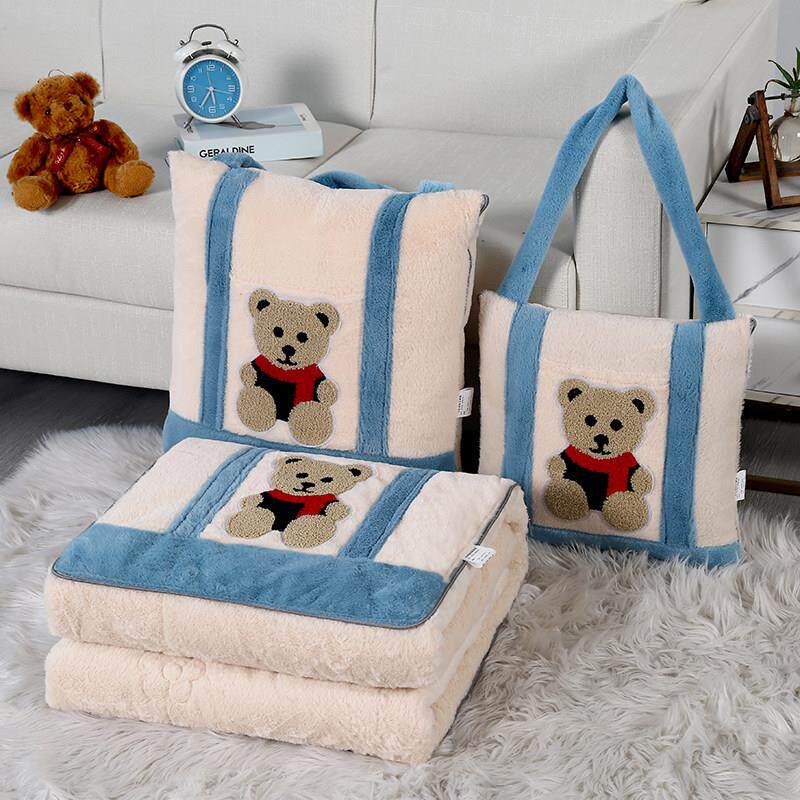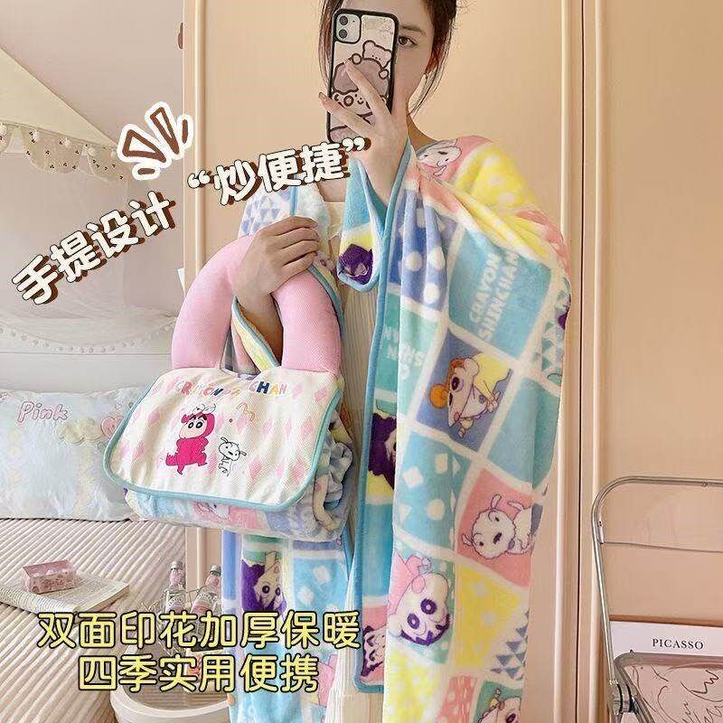 小新折叠抱枕两用法兰绒毯子办公室空调毯盖腿披肩午休毯便携可爱