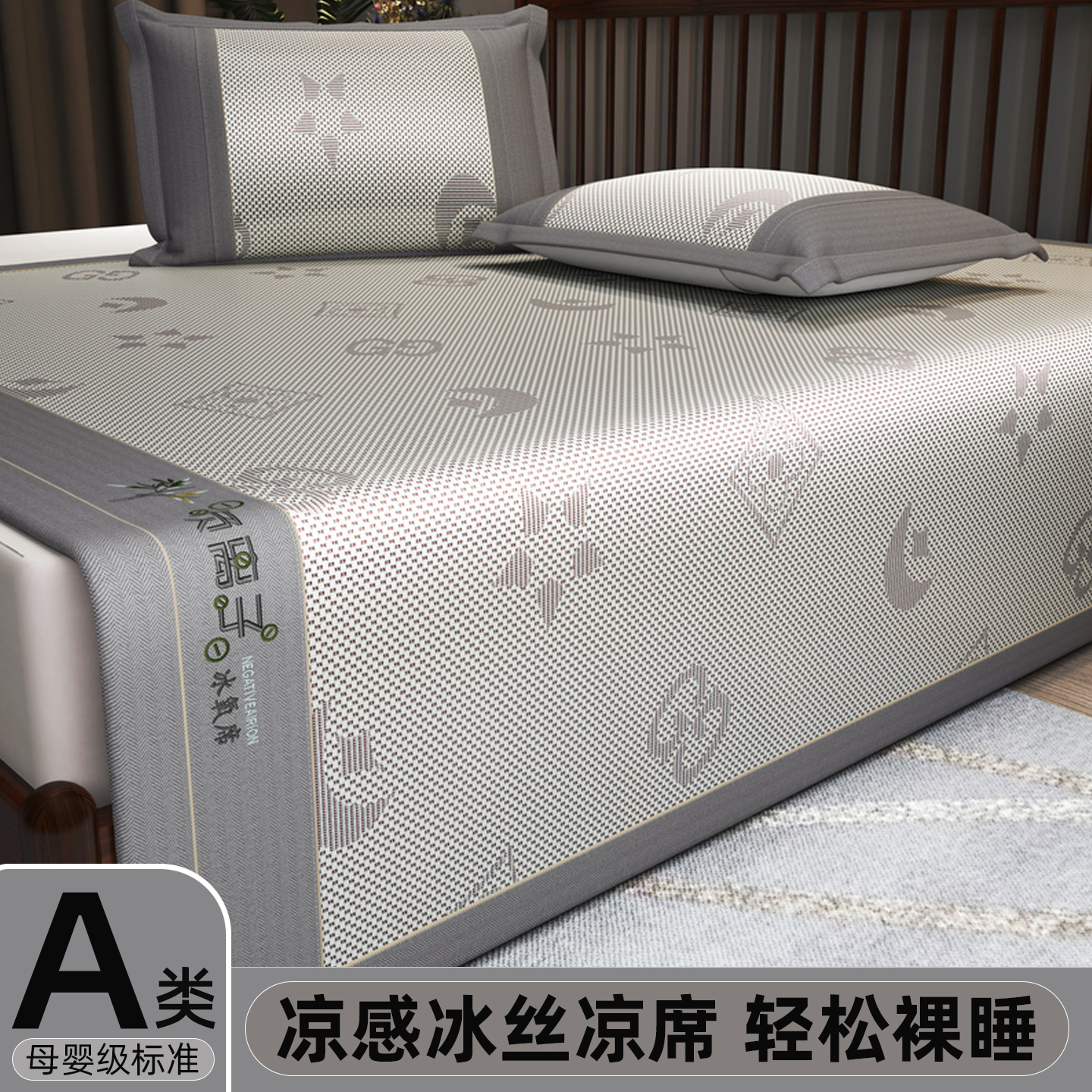 夏季凉感A类床笠款冰丝席三件套可水洗机洗空调凉席提花软席子