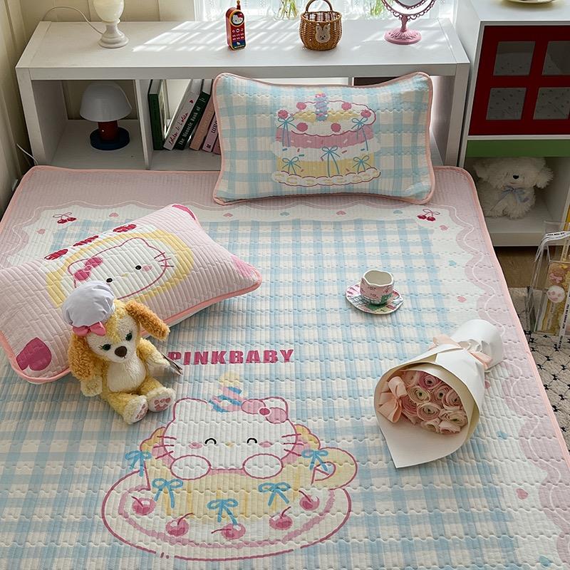 ins冰丝席KT猫软席凉席三件套床笠款卡通可水洗机洗空调凉席A类