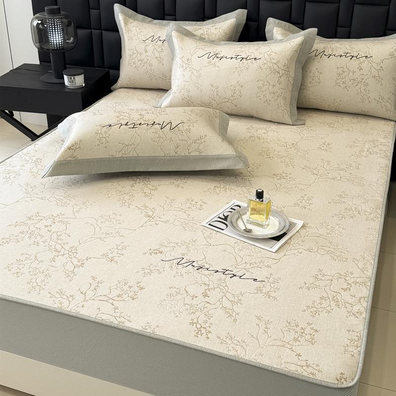 轻奢风新款高端夏季凉席冰丝席可水洗床笠款空调席三件套1.8m夏天