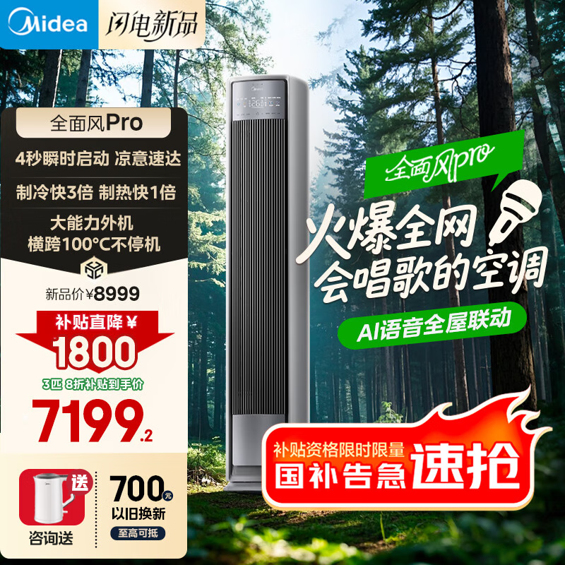 美的空调 全面风 风尊二代 立式柜机 新一级能效变频冷暖 家用客厅2025新品 家电以旧换新国家补贴20% 全面风Pro 大3匹 AI语音