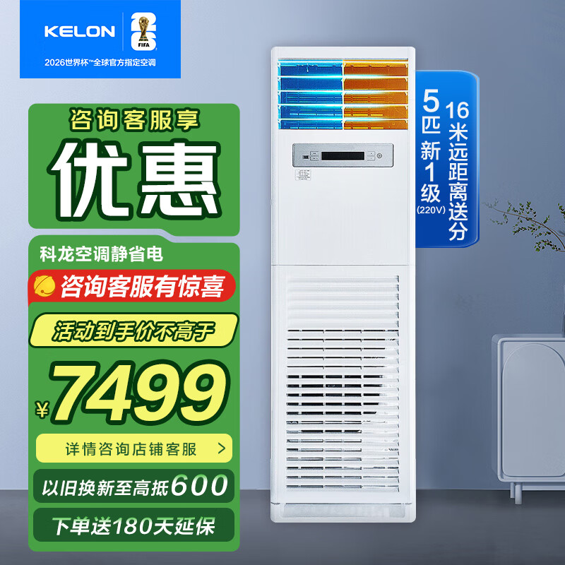 科龙中央空调 大5匹立式柜机强劲冷暖 新一级能效变频 商用立柜式客厅空调柜机二/三相电大风量57-88㎡ 大5匹 一级能效 送4米铜管220V【可开专票】