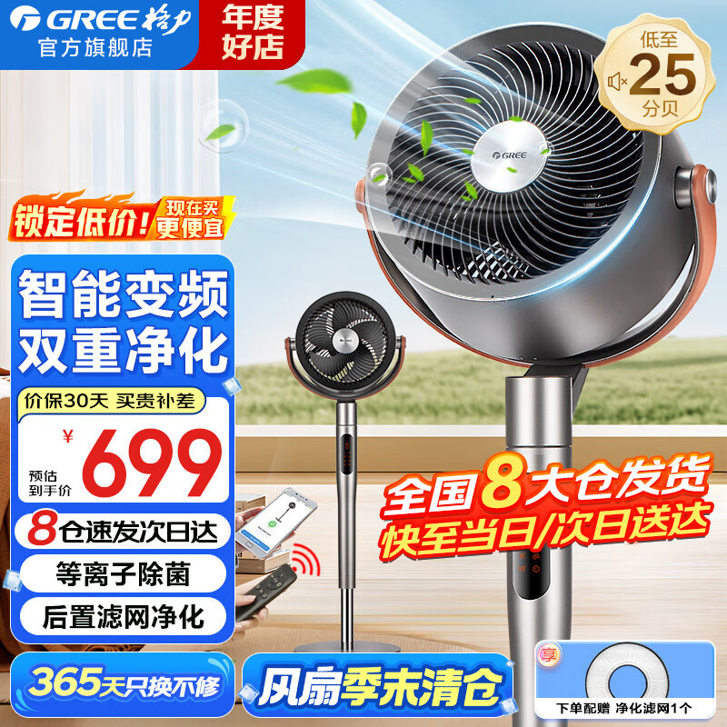 格力(GREE)电风扇家用空气循环扇智能遥控落地扇等离子除菌净化扇直流变频节能电扇轻音低噪换气扇空调伴侣 FXDZ-2305Bag5-等离子除菌升级款