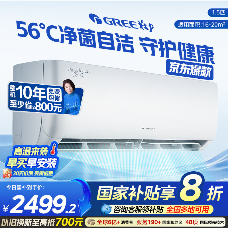 格力(GREE)空调大1/1.5匹智能省电 新一级能效 变频冷暖 高温自清洁官方旗舰正品壁式卧室挂机 1.5匹 一级能效 爆品挂机