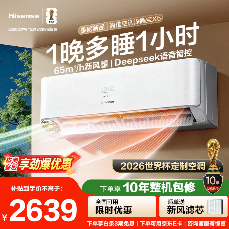 海信新风空调 深睡宝X5 大1.5匹/大3匹 AI洁净新风 语音智控 新一级挂机 国家补贴20% 立式空调柜机 深睡宝 大1.5匹 KFR-35GW/X5E1-1
