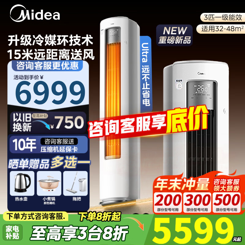美的(Midea)一级能效2/3匹P柜机空调酷省电ultra4匹智能变频冷暖自清洁家用客厅空调立式以旧换新酷省电PRO 酷省电Ultra 大3匹 超一级能效 1年省电816度