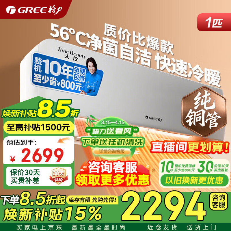 格力空调 天仪pro 1.5匹 新一级能效 变频冷暖 纯铜管 卧室壁挂式挂机官方旗舰店正品家电补贴以旧换新 天仪 大1匹 纯铜管 性价比爆款【适用10-15㎡】
