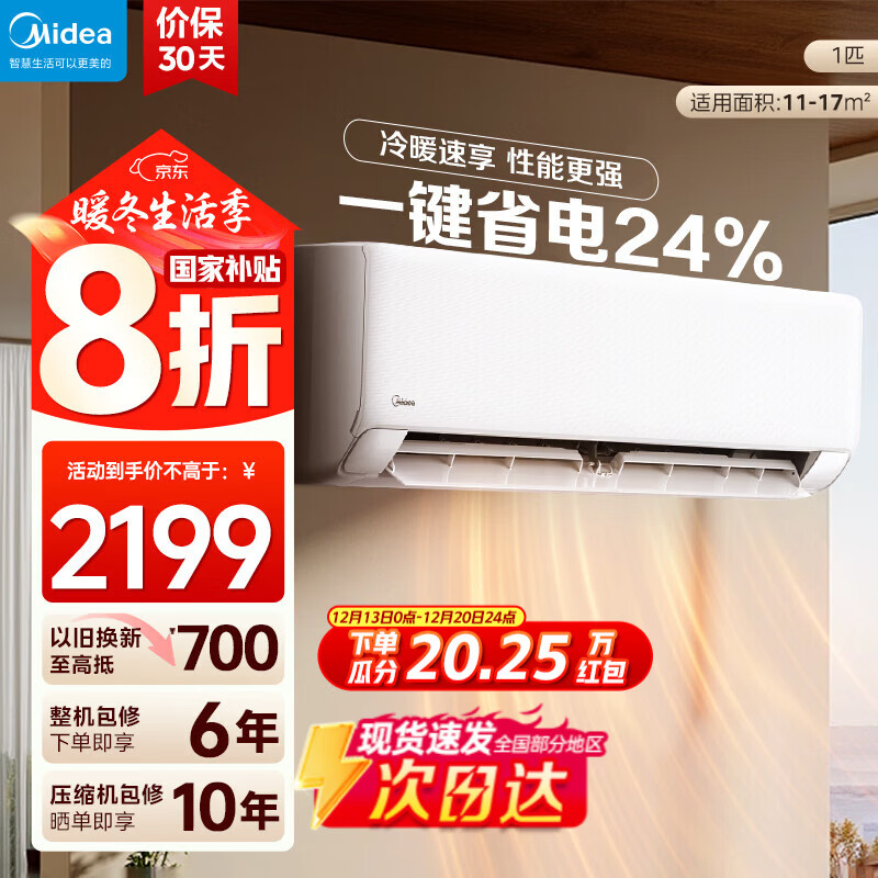 美的(Midea)空调挂机 制冷王风酷 冷静星 新一级能效 变频冷暖节能省电智能挂机以旧换新 国家补贴 立享8折 大1匹 一级能效进阶版