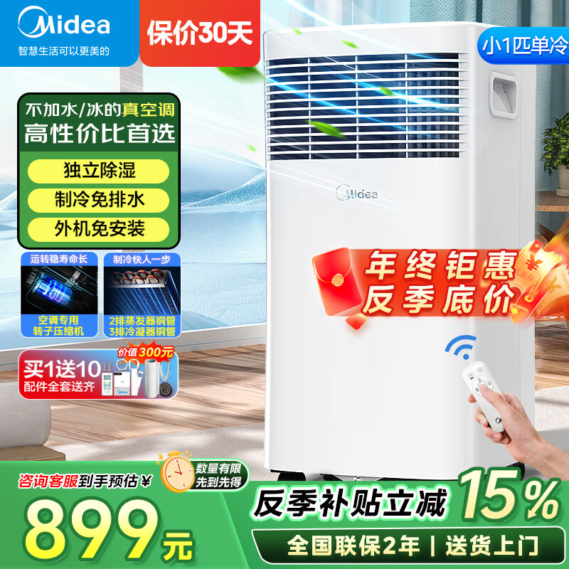 美的(Midea)移动空调制冷一体机家用立式单冷一匹无外机空调小1匹 轻音省电出租房厨房免安装压缩机制冷风扇 小1匹KY-15/N7Y-PHA