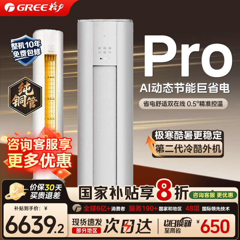格力(GREE)空调柜机 云佳pro 2匹/3匹 新一级能效 圆柱式方柜空调 变频冷暖 家用客厅 以旧换新 国家补贴8折 3匹一级能效云佳Pro【云锦三代升级款】 皓雪白