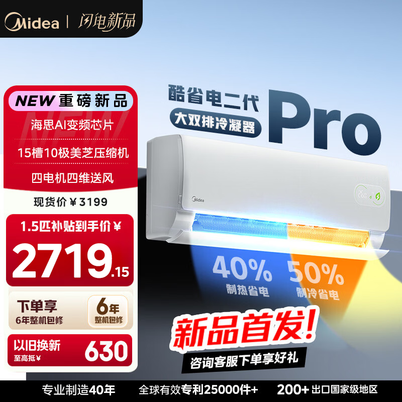 美的空调挂机酷省电二代大1.5匹酷省电pro新一级能效1匹变频冷暖家用卧室壁挂式国家家电补贴以旧换新 酷省电二代 PRO双排铜管 大1.5匹