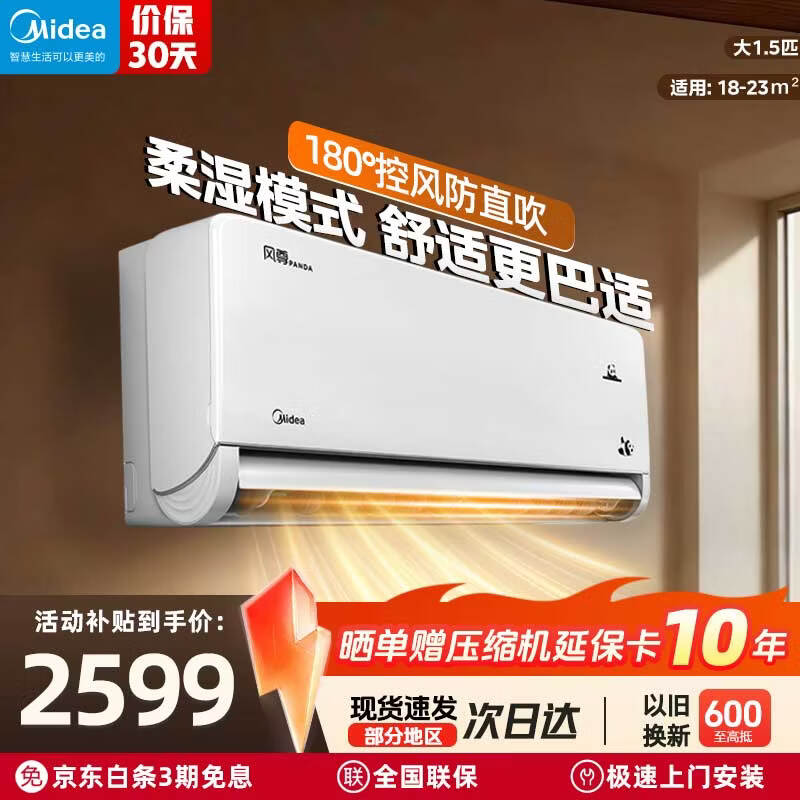 美的(Midea)空调 大1.5匹 国家补贴15% 风尊熊猫版 新一级能效挂机 全直流变频省电 冷暖两用家用卧室壁挂式 风尊 一级能效 大1.5匹 熊猫版 PANDA 全国联保 配送