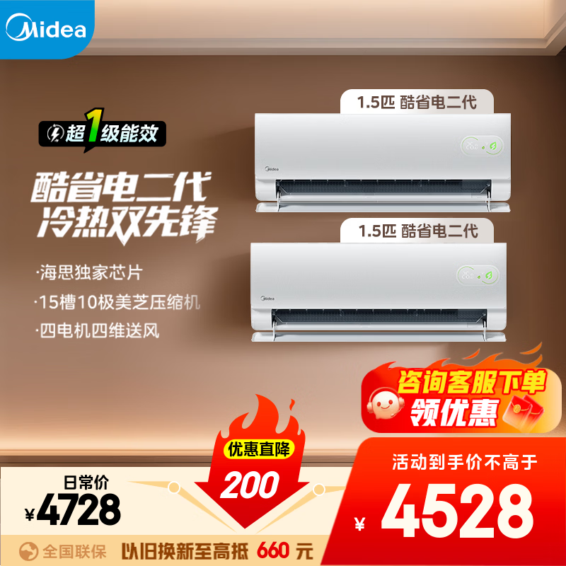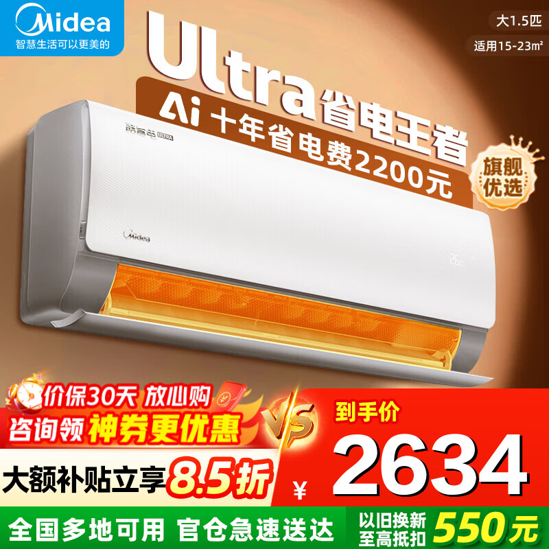 美的(Midea)【国家补贴】空调挂机 大1.5匹 酷省电2025版 新一级能效 变频冷暖除湿 卧室壁挂式 以旧换新补贴 酷省电Ultra 大1.5匹 冷暖 一级能效 高配