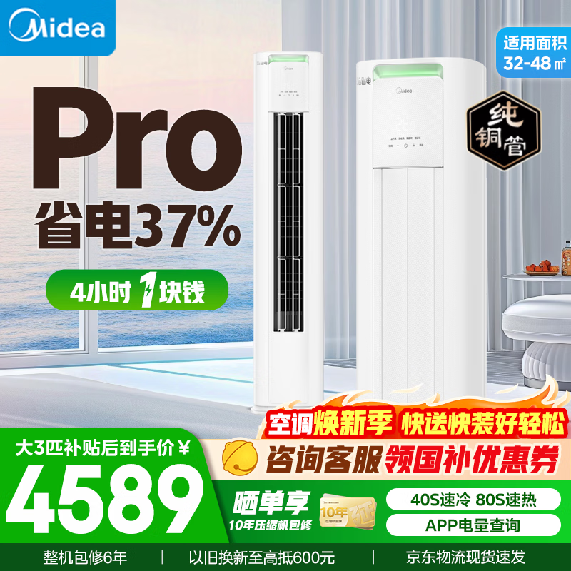 美的(Midea)空调3匹/2匹 酷省电PRO 客厅立式柜机空调新一级能效变频冷暖家用以旧换新国家补贴智能家电 大3匹 KFR-72LW/N8KS1-1P