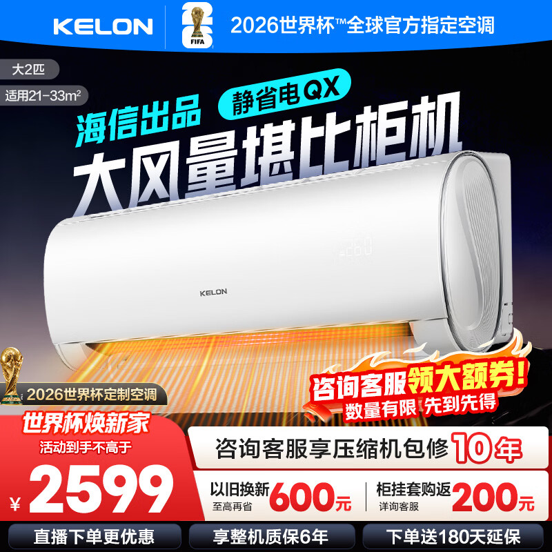 科龙(KELON)空调海信出品 大2匹/大3匹挂机 询单减200 静省电 新一级 大风量冷暖变频 壁挂式客厅商用以旧换新 大2匹 一级能效 【询单有礼】50QXX1 下单享压缩机十年包修权益