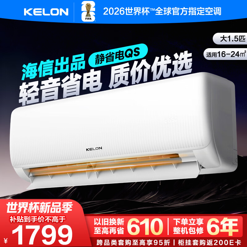 科龙(KELON)空调静省电睡挂机大1/1.5匹新一级能效节能变频 快速冷暖柔风除湿以旧换新国家补贴海信世界杯 静省电 1匹 QS轻音省电