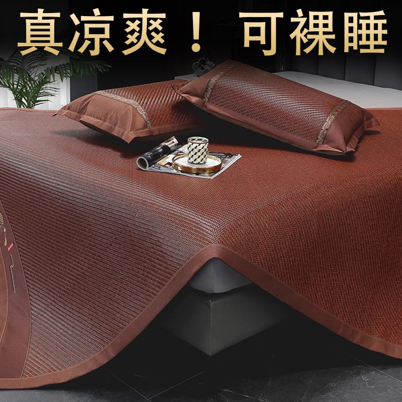 2025新款凉席夏季藤席家用草席凉感冰丝空调席折叠席子三件套水洗
