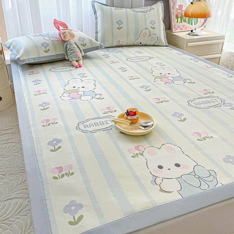 精选儿童冰丝凉席三件套床笠款空调软冰席夏季凉感席子-水豚爱洗