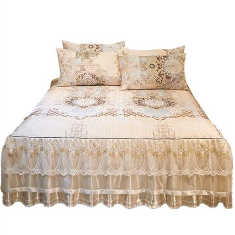 冰丝凉席欧式床裙款m席子三件套1.8m空调软席可机洗折叠蕾丝床罩