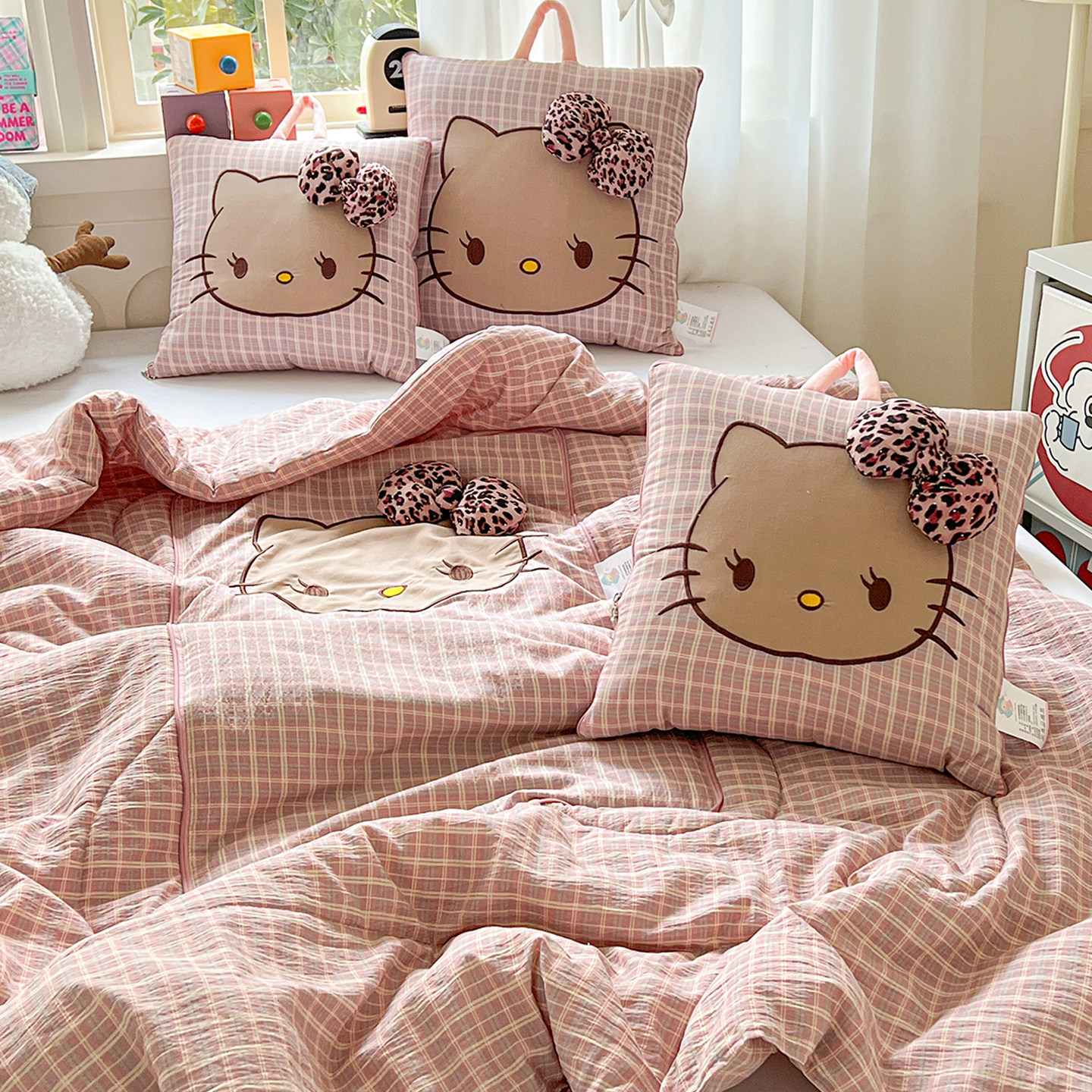 四季KT猫格子抱枕被子可爱汽车沙发两用靠垫学生宿舍空调被可折叠