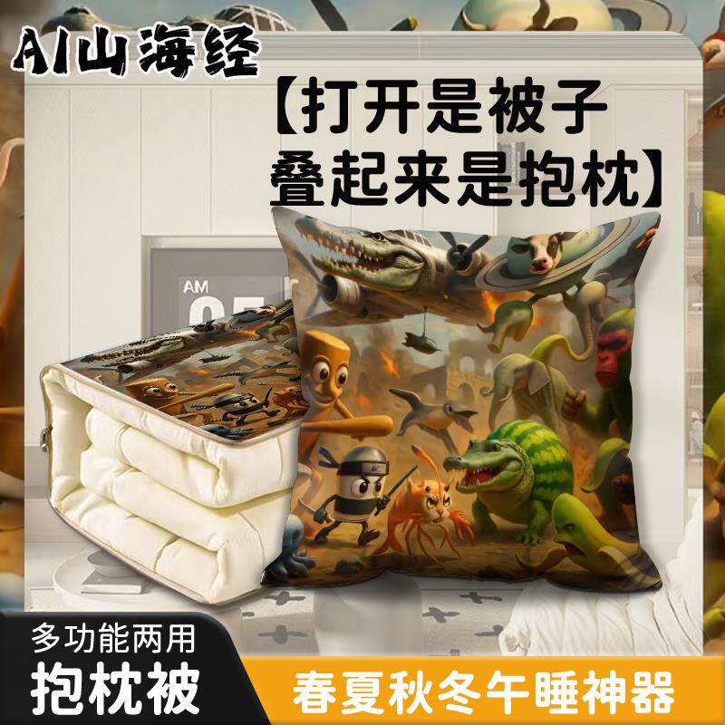 海外版山海经抱枕被子两用空调毯子午睡办公室枕头靠枕折叠二合一
