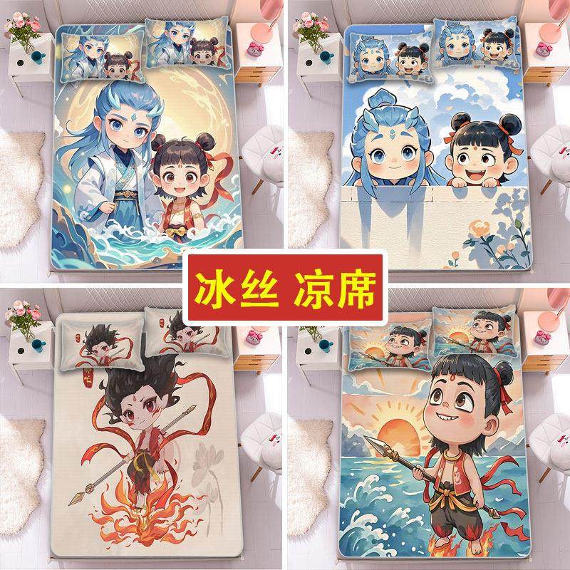 卡通哪咤冰丝凉席敖光敖丙0.9m宿舍可爱太乙空调席1.2米1.5单人床