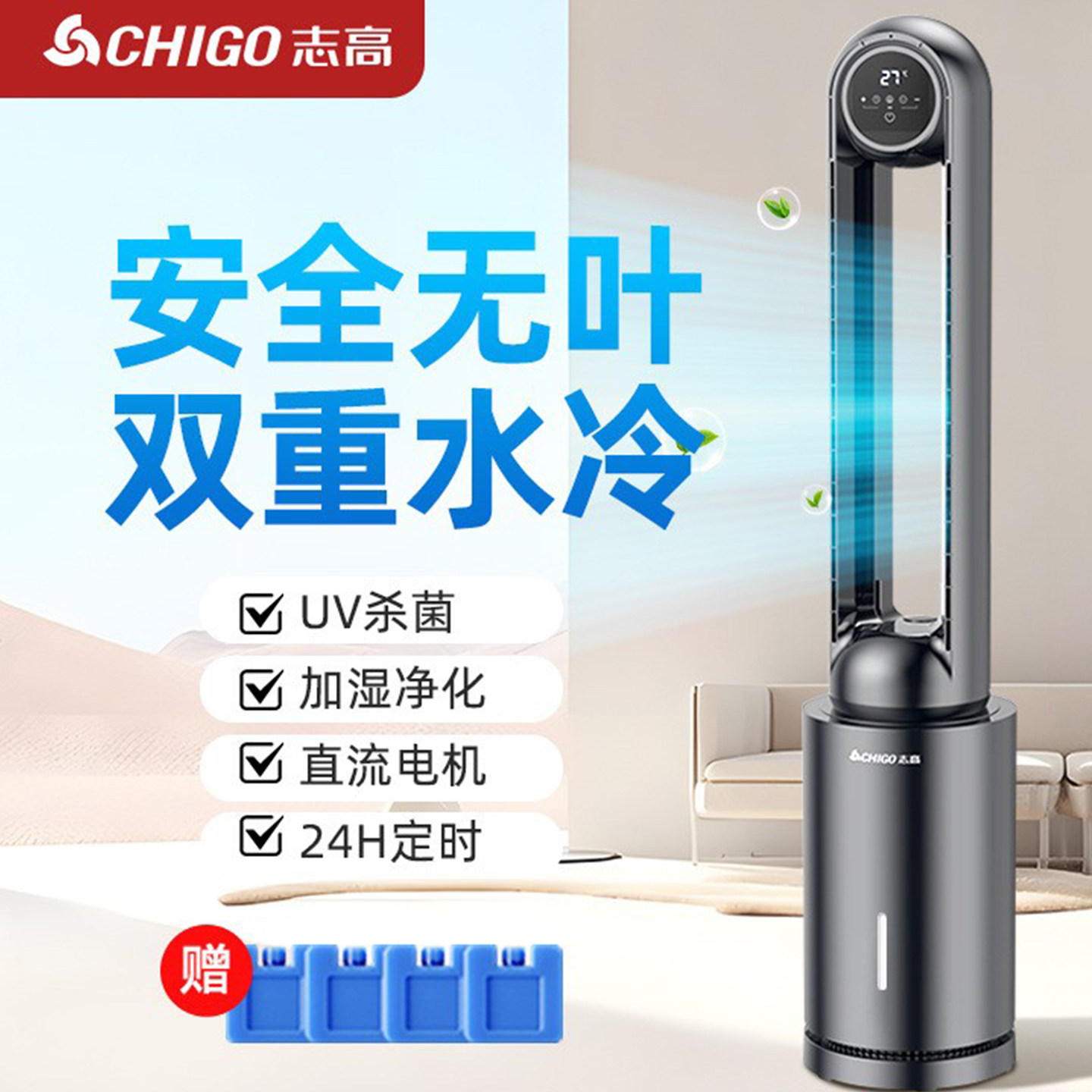 志高无叶风扇电风扇家用空调扇冷风扇塔扇落地扇水冷风扇无叶风扇
