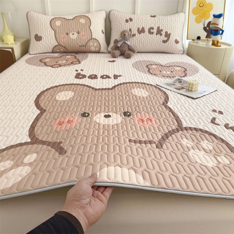 夏季a类冰丝乳胶凉席三件套可水洗床笠款空调凉感软席子大版卡通