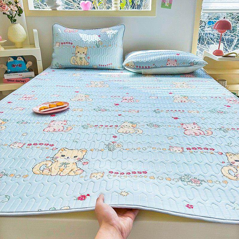 夏季凉感丝乳胶凉席1.5m1.8三件套少女心卡通可折叠防滑空调软席
