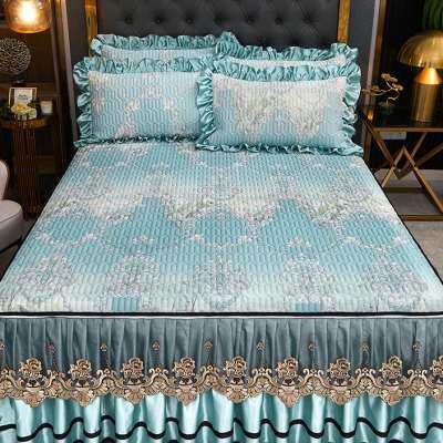 夏季乳胶凉席三件套蕾丝床裙冰丝凉感1.5米1.8m床可水洗空调席子
