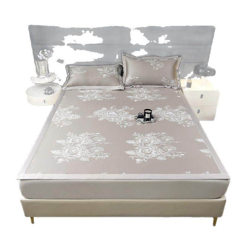 夏季冰丝凉席三件套竹席子冰丝凉感空调软席垫子家用轻奢凉席床垫