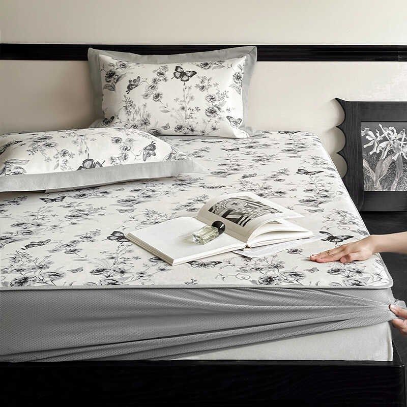 西西里清冷感蝴蝶凉席三件套夏季可水洗折叠冰丝空调席1.5m1.8m