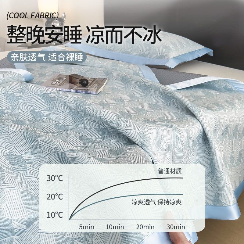 远梦凉感冰丝席三件套夏季凉席可水洗夏天柔软空调席子1.5/1.8m床