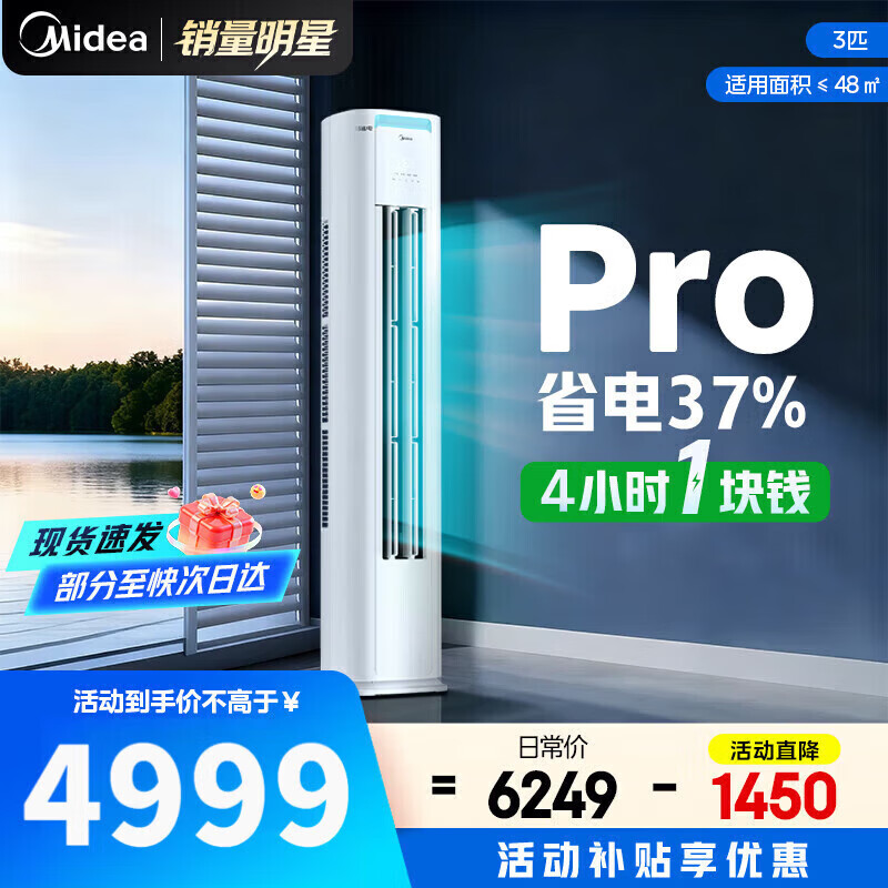 美的(Midea)空调柜机大3匹酷省电/新一级能效变频冷暖节能除湿速热防直吹家用客厅空调立式园柜以旧换新 大3匹一级能效 72N8KS1-1P 美的酷省电