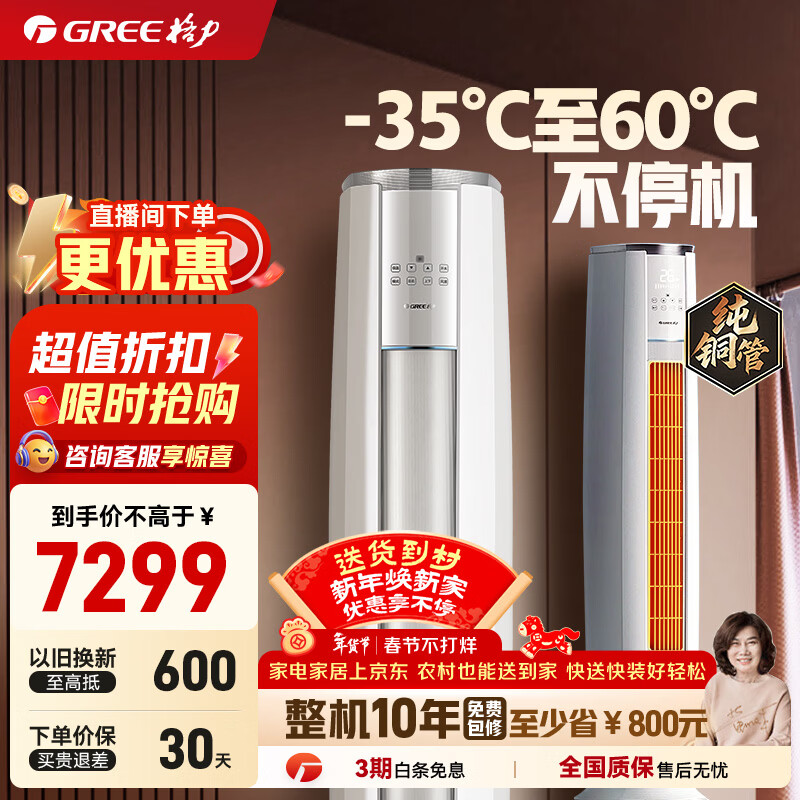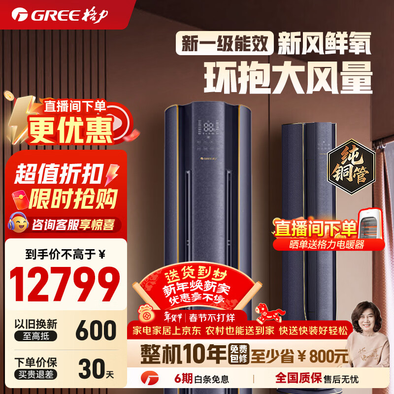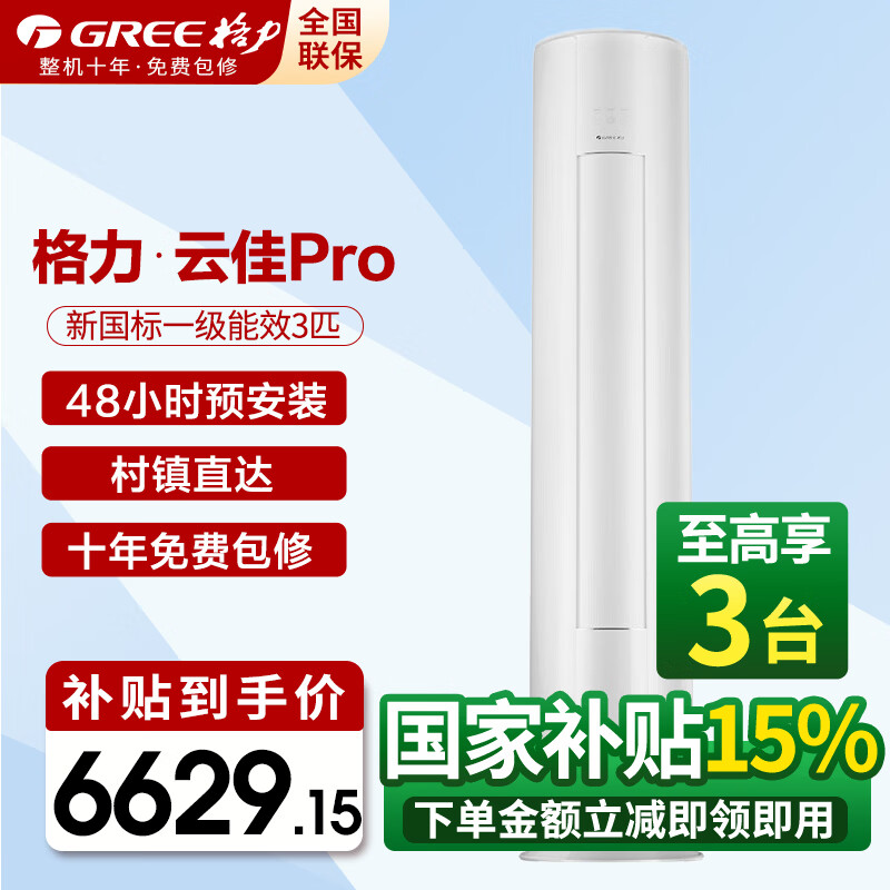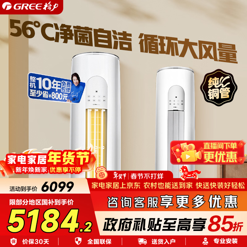 格力(GREE)空调2匹 云之炫/同天丽 新1级变频冷暖 自清洁空调 大风量双杀菌防冷风 客厅家用圆柱立式空调 3匹一级能效云之炫【热销爆款】