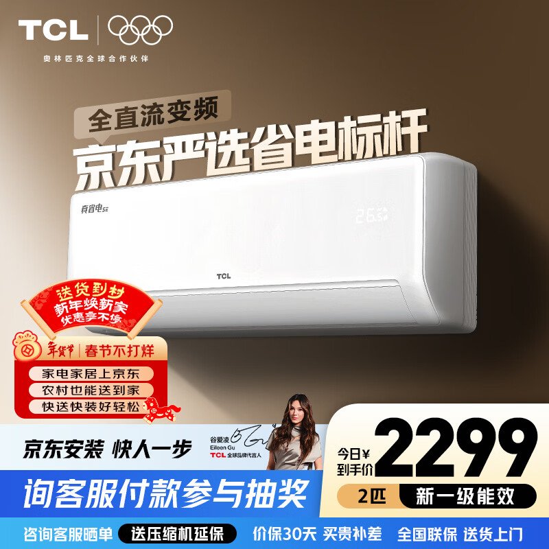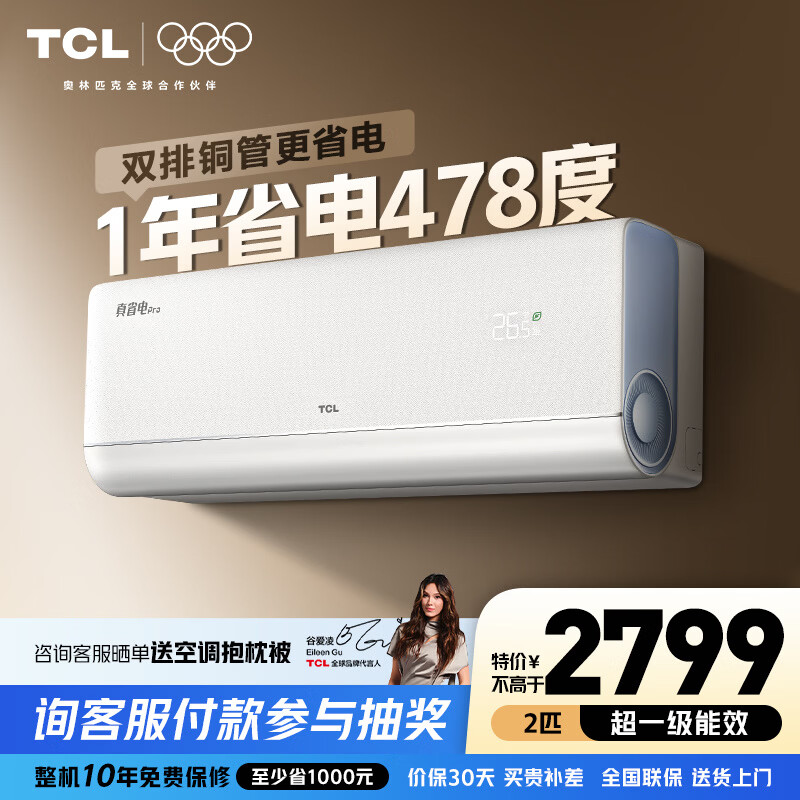 TCL1.5/2匹 小蓝翼真省电Pro 空调挂机 超一级能效 省电40% 壁挂式卧室空调挂机空调 2匹 一级能效省电40%