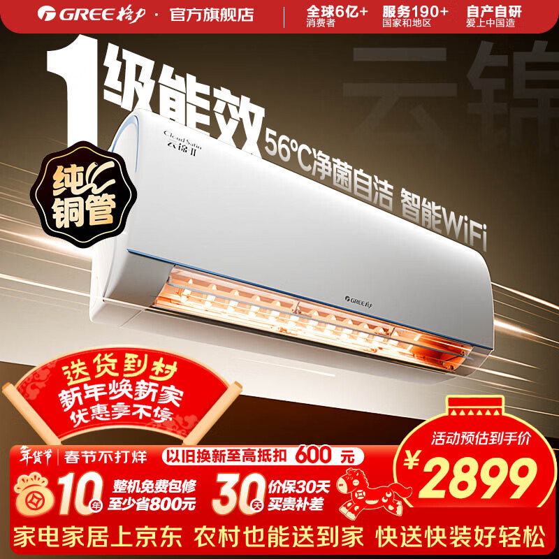 格力(GREE)空调 云锦畅销款 新一级能效 变频冷暖 高温自清洁 智能WIFI 壁挂式空调 家电国家补贴 以旧换新 云锦II 新一级能效 大1匹