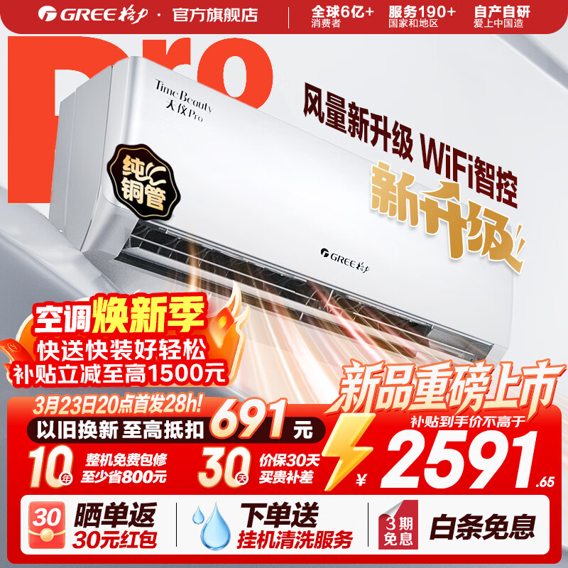 格力空调 天仪Pro 新一级能效 变频冷暖 智能WiFi 纯铜管 卧室挂机 新品升级 省电空调 天仪 Pro 1.5匹 2026年新款