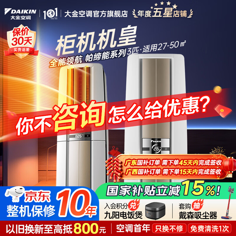 大金空调(DAIKIN) 官方旗舰 大3匹立式柜机 帕蒂能 帕缔能系列 强劲冷暖客厅省电以旧换新 国家补贴 帕缔能 大3匹 FVXF172WC-W白色 新国标能效