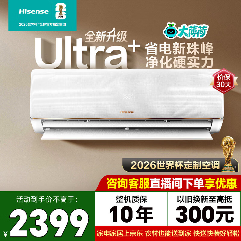 海信(Hisense)大薄荷空调智省电Ultra+ 世界杯定制空调大1.5匹挂机国家补贴15%新一级能效AI省电卧室家用 智省电 【Ultra+】 大1.5匹 升级负氧离子