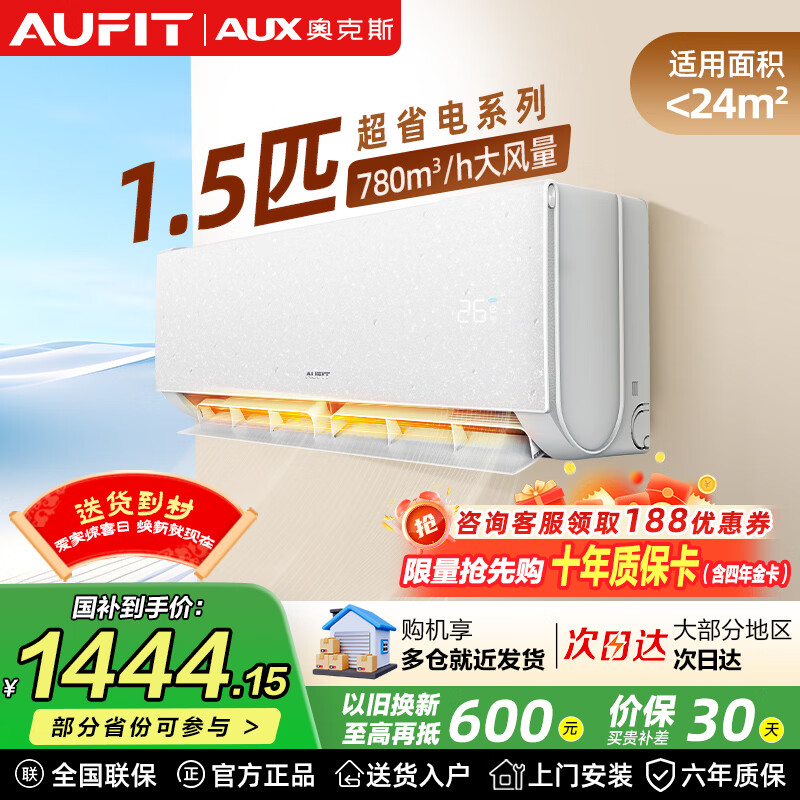 AUFIT空调奥克斯AUX出品1匹大1.5匹2匹挂机新一级能效变频冷暖家用卧室壁挂式防直吹除菌自清洁以旧换新 特省电 大1.5匹 一级能效防直吹自清洁【WIFi款】