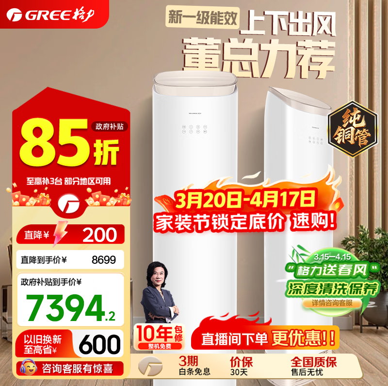格力(GREE)空调柜机王者/京致上下送风 防直吹 新1级变频冷暖冷酷外机 衡温客厅节能立式空调 家电国家补贴 王者 一级能效 3匹